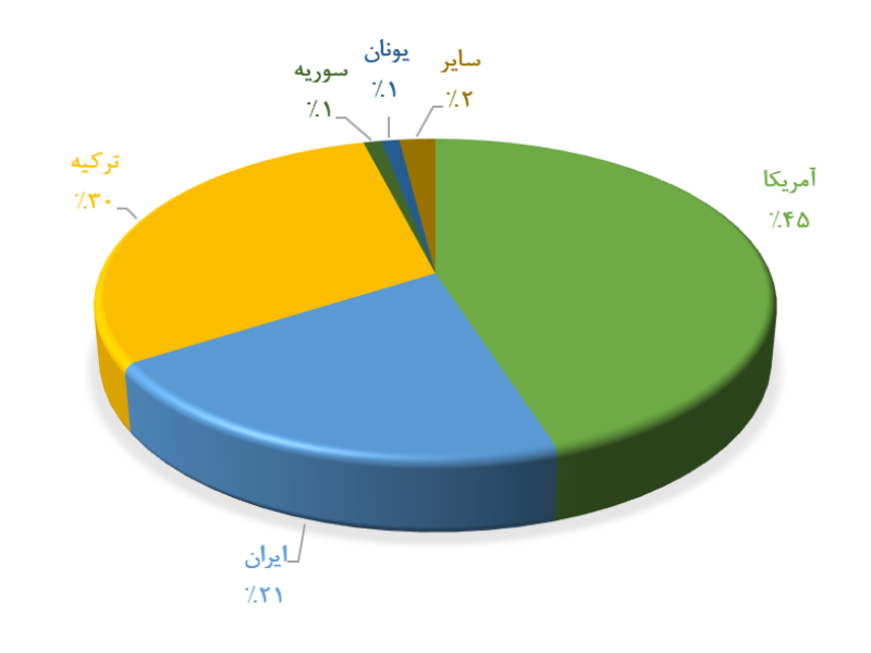 همان طور که در جدول و نمودار قابل مشاهده است، در سال1404-1403 آمریکا اولین رتبه را دارد و ایران در جایگاه دوم قرار گرفته است، در حالی که تا چند سال پیش ایران رتبه اول را داشته است.