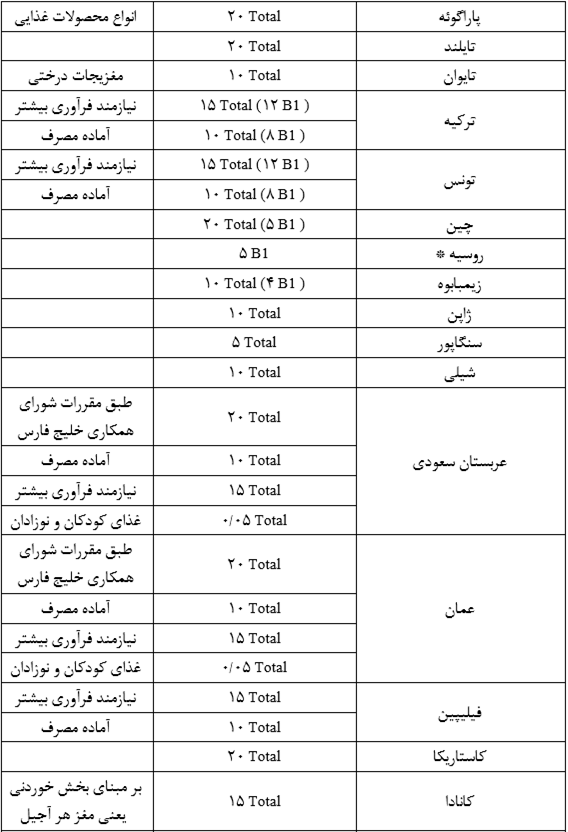 - 3 محموله از ایران با سطح آلودگی 45 تا 110 میکروگرم بر کیلوگرم