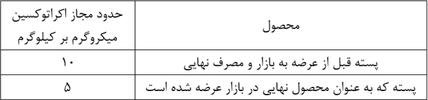 حدود مجاز اکراتوکسین مطابق با اتحادیه اروپا در جدول زیر آمده است: