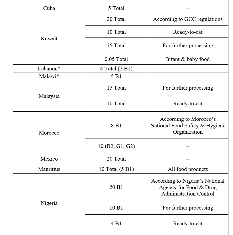 - Maximum Permissible Levels of Mycotoxins in Global Markets