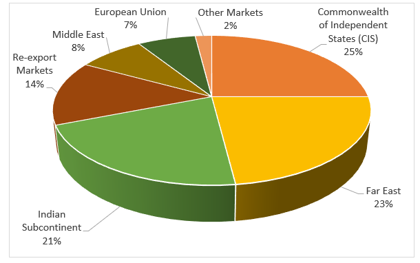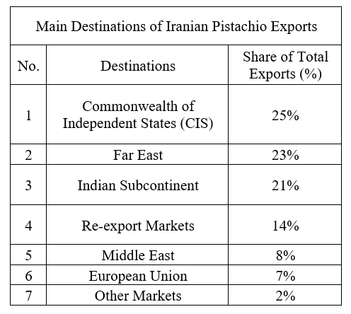 Today, pistachio is regarded as one of Iran’s key non-oil export commodities. Iranian pistachios are exported to numerous destinations, as shown in the table below: